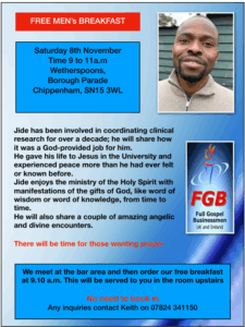 Join us for the Men’s Breakfast in Chippenham with guest speaker Jide.